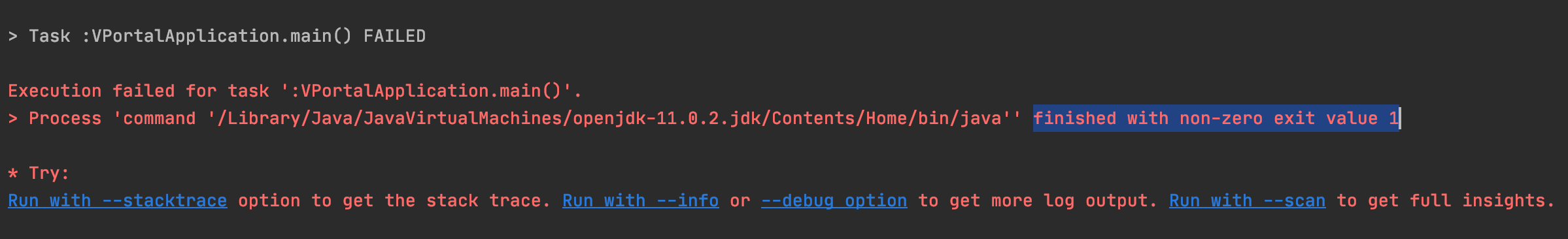 [인텔리제이] 스프링부트 실행 시 jdk 에러 finished with non-zero exit value 1 본문