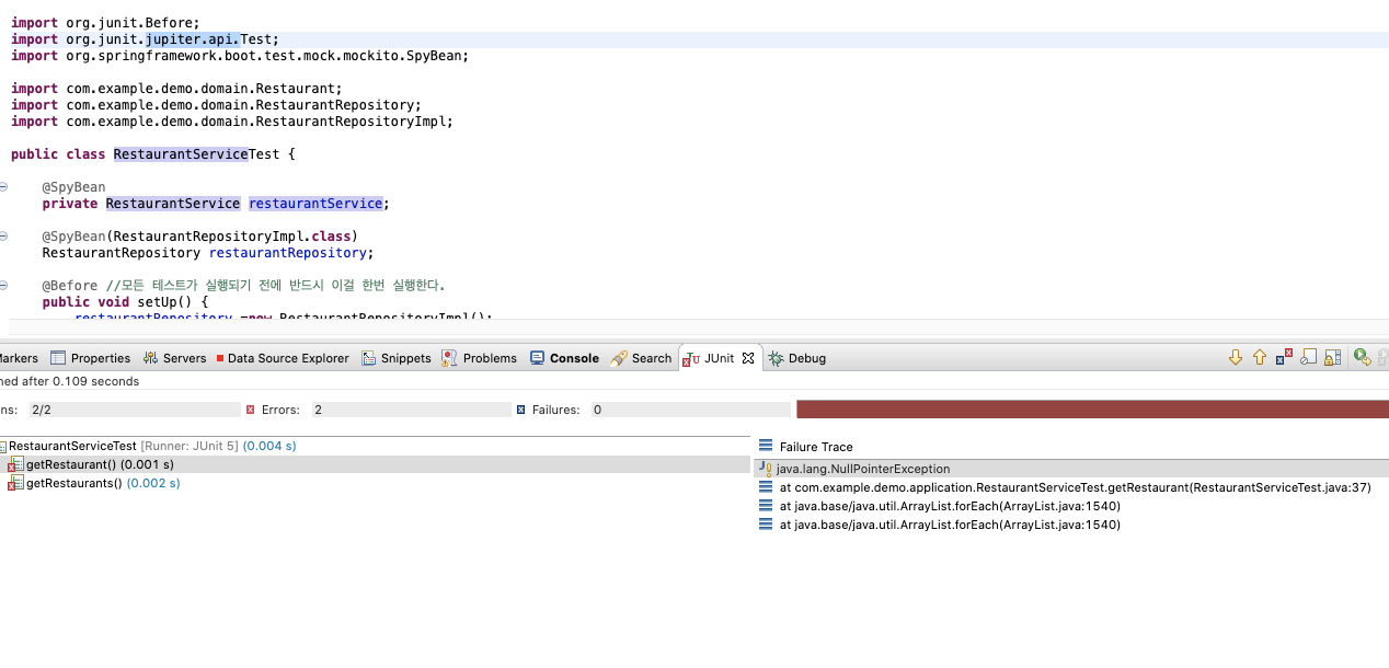 저번처럼 @SpyBean을 안해줘서 그런가. 또 이걸로 1시간이 지나갔다.