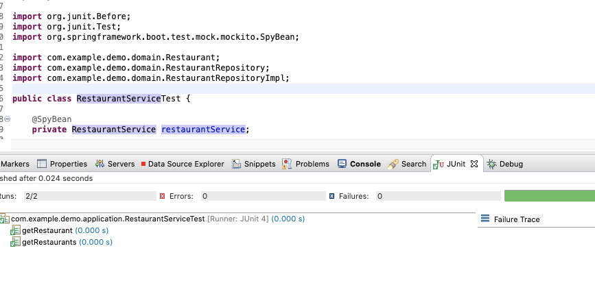 Junit 5 -> Junit 4로 변경하고 Apply -> Run 하니까 정상적으로 실행됬고, 값도 제대로 들어왔다.