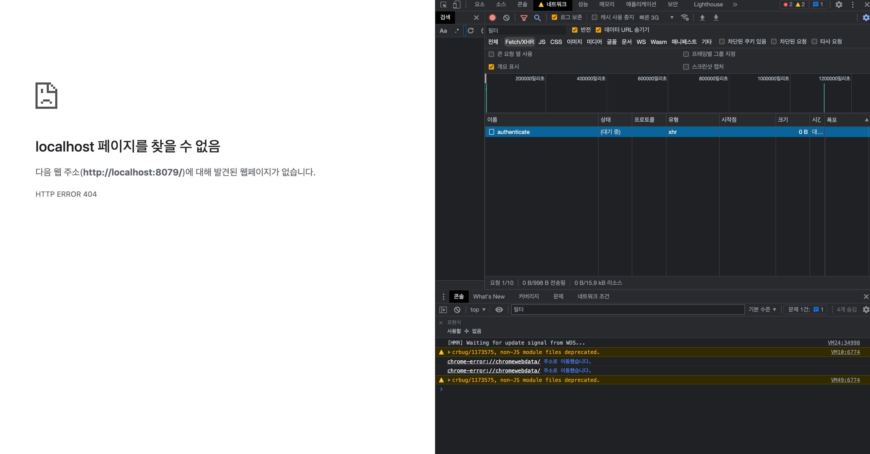 - authenticat API는 계속 pending되고 페이지는 계속 새로고침이 되고 있다.