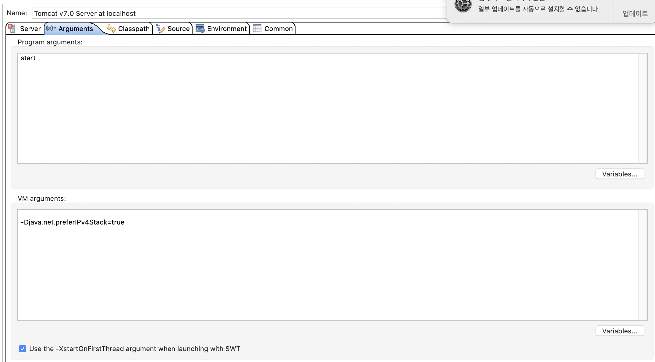 이클립스 메뉴 Run -> Run Configurations -> Arguments 탭에서