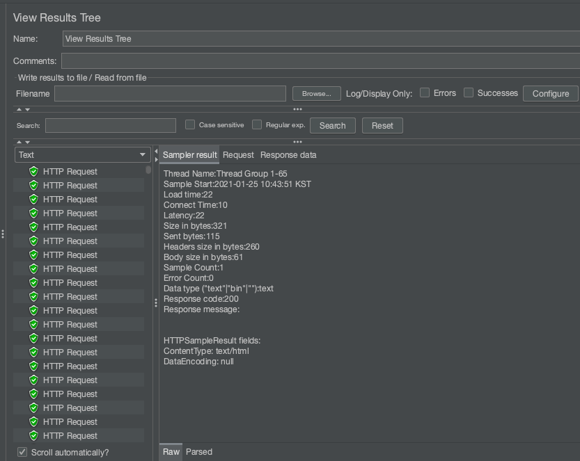 Throughput /min : 분당 13.9번의 access를 했다. 높을 수록 좋은것! 서버쪽에 에러가 나서 불능상태가 되면 복잡한 작업을 처리하지 않기때문에 throughput은 높아질 수 밖에 없다. 그래서 Error와 잘 비교하는 것이 중요!