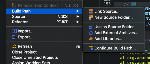 1. 프로젝트 우클릭 ->Build path -> Configure Build Path....에 들어간다.